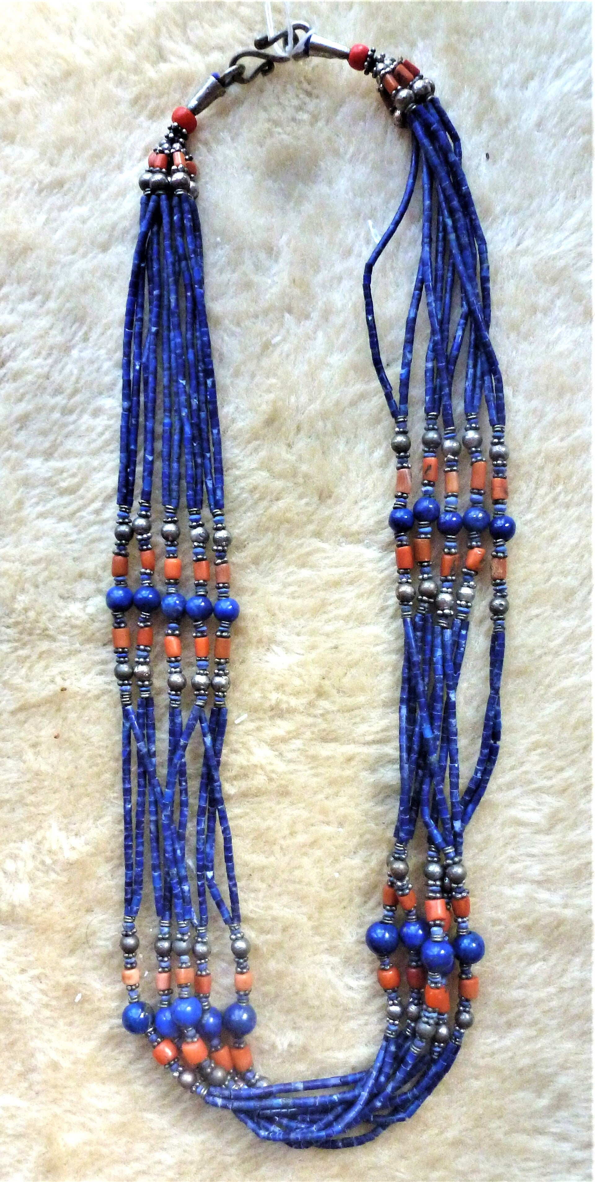 Natuurlijk Lapis Lazulli collier. uit de Himalaya met Bloedkoraal.