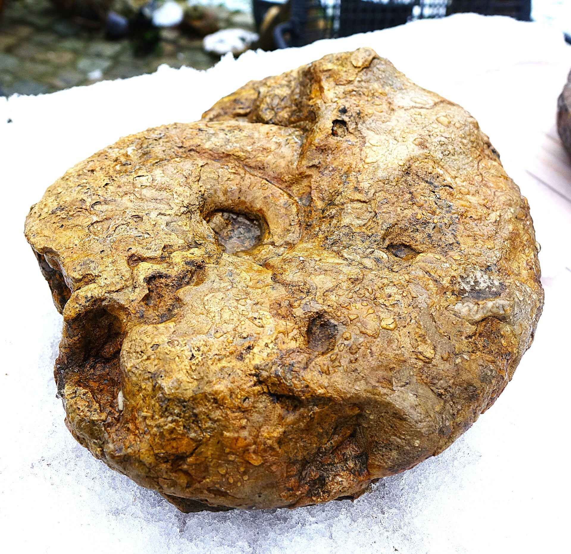 Grote Ceratiet 23 cm , 250 milj. jaren oud is aangebeten.