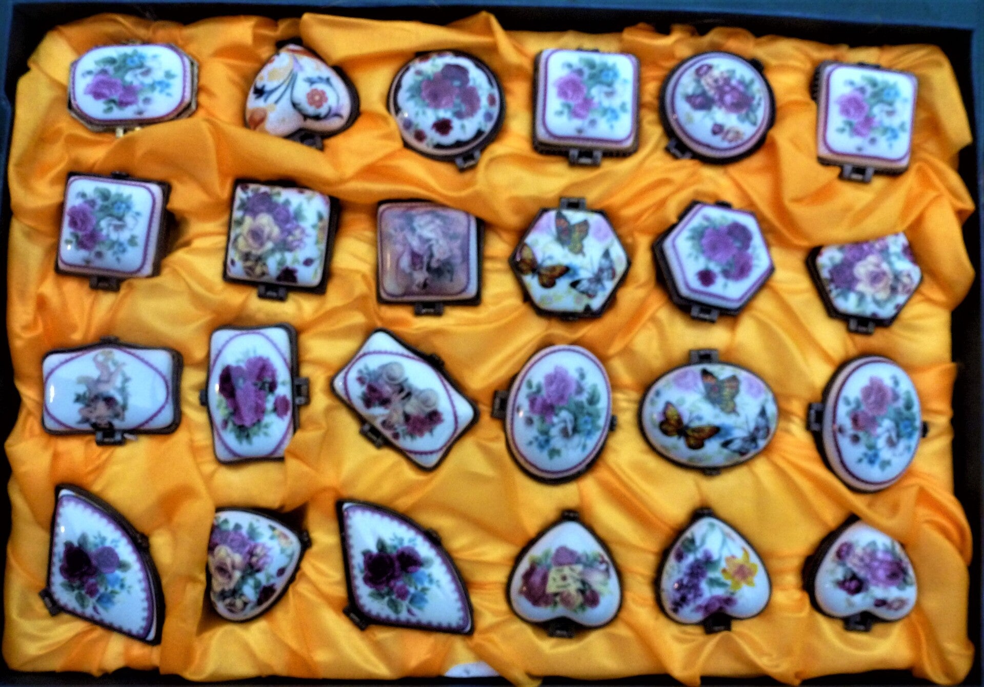 Antieke Porseleinen pillen, sieraad, of snuifdoosjes voorbeeld